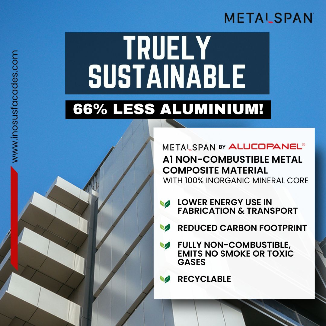 Metalspan is an INOSUS brand - focused on Rainscreen Cladding for Building facades, materials designed, engineered and manufactured to maximise fire safety and proactively aiming to decarbonise by reducing the carbon footprint of the construction industry. Driven by our ethical business values at INOSUS we have developed METALSPAN UK by ALUCOPANEL Aluminium Composite Panel (ACP) that has acheived Euro - class A1 standard (Non-combustible) according to BS EN 13501-1 reaction to fire test for the design community, developers and contractors.