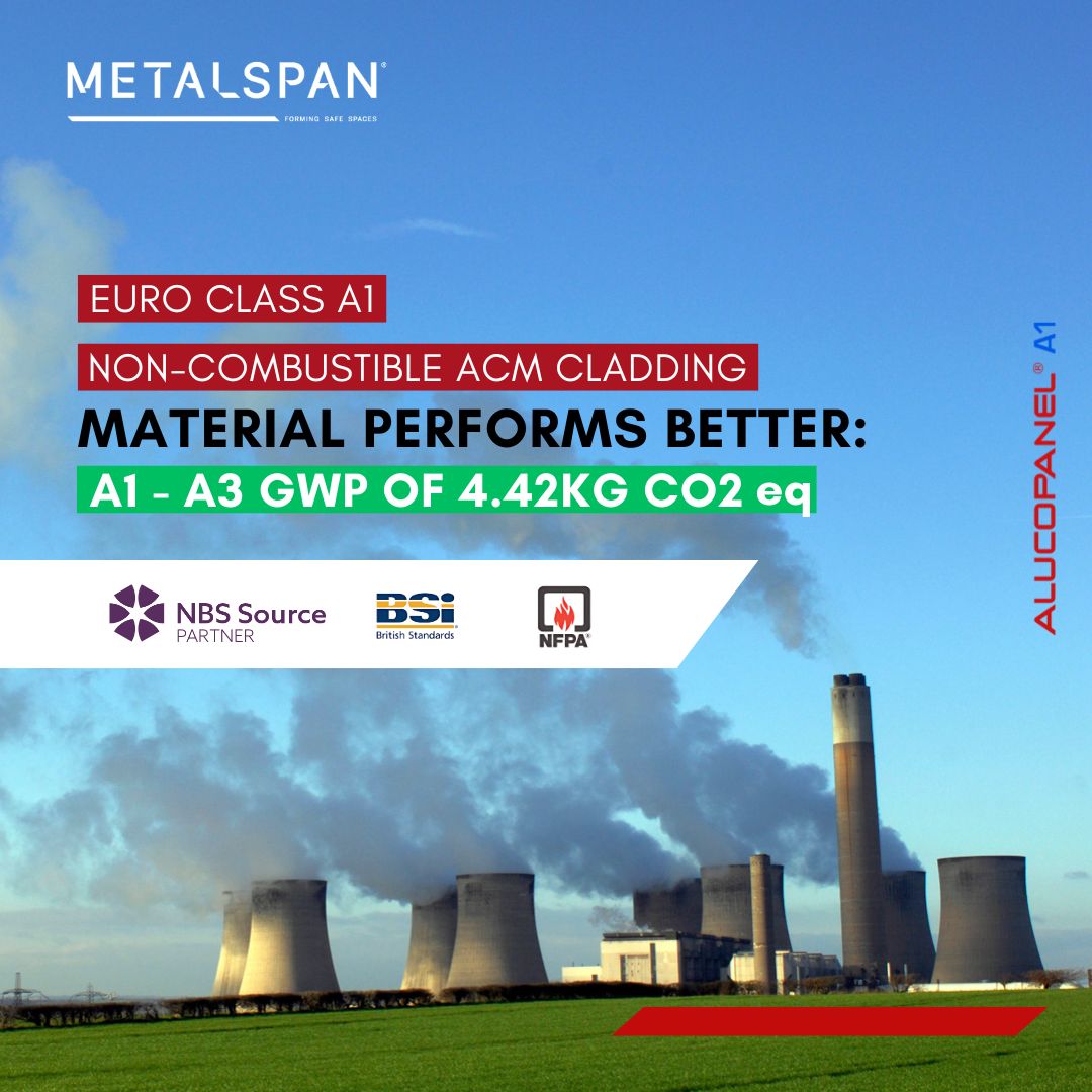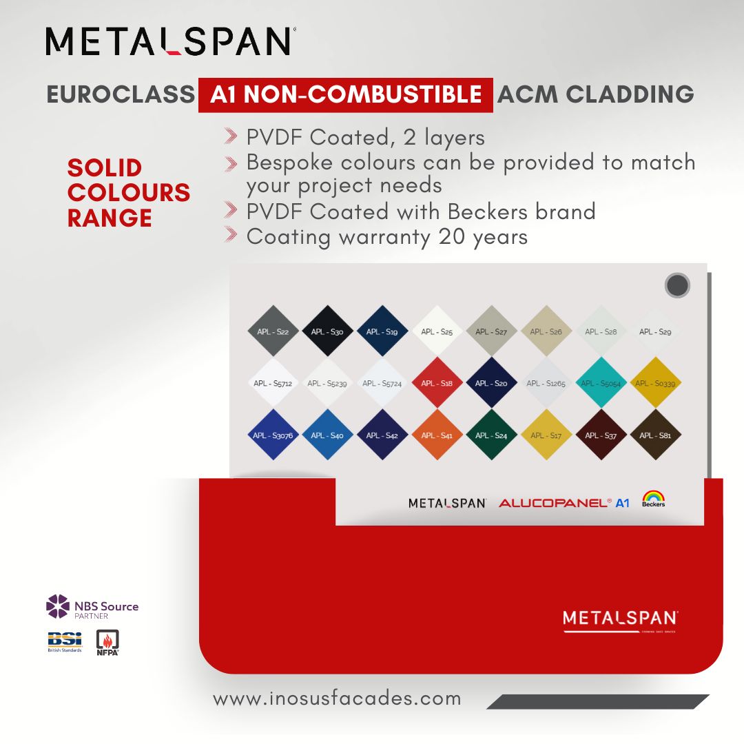 METALSPAN by ALUCOPANEL is a Euro Class A1 Non-Combustible Aluminium Composite Material with 100% inorganic core, making it one of the best engineering solutions for building facades due to its environmental benefits in addition to the maximum fire safety standard of A1.