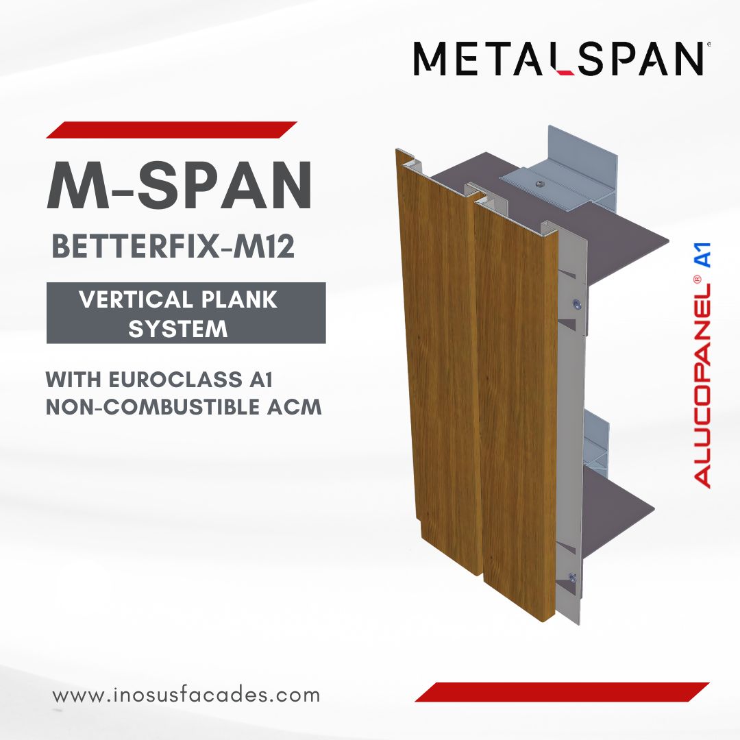 The M-SPAN M12 BetterFIX Rainscreen Plank system, featuring METALSPAN by ALUCOPANEL Euroclass A1 non-combustible Aluminium Composite Material (ACM), offers a safe, durable, and eco-friendly facade solution ideal for both new constructions and cladding replacements. This system is the perfect alternative to natural wood cladding, providing the warmth and aesthetic appeal of wood through our wood finish plank options.