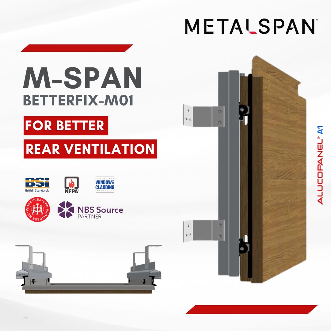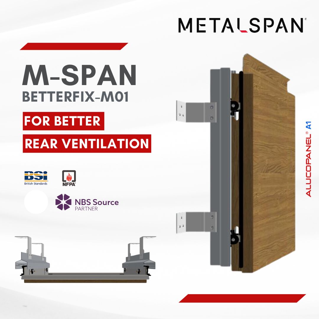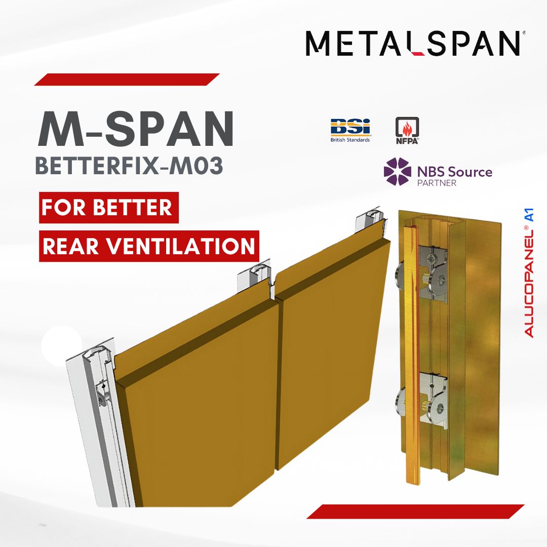 METALSPAN by ALUCOPANEL is supplied as part of our specially designed M-SPAN BetterFIX Rainscreen Cladding System to provide maximum fire safety for building facades while reducing embodied carbon ( A1-A3: 4.42 CO2 Eq). Moreover, our composite technology with a non-combustible core reduces the demand for aluminium by 66% compared to traditional 3mm solid aluminium cladding. Our unique panels rainscreen panel system has been designed to provide pressure-equalised, better rear ventilated system for the design community, developers, contractors, and clients.