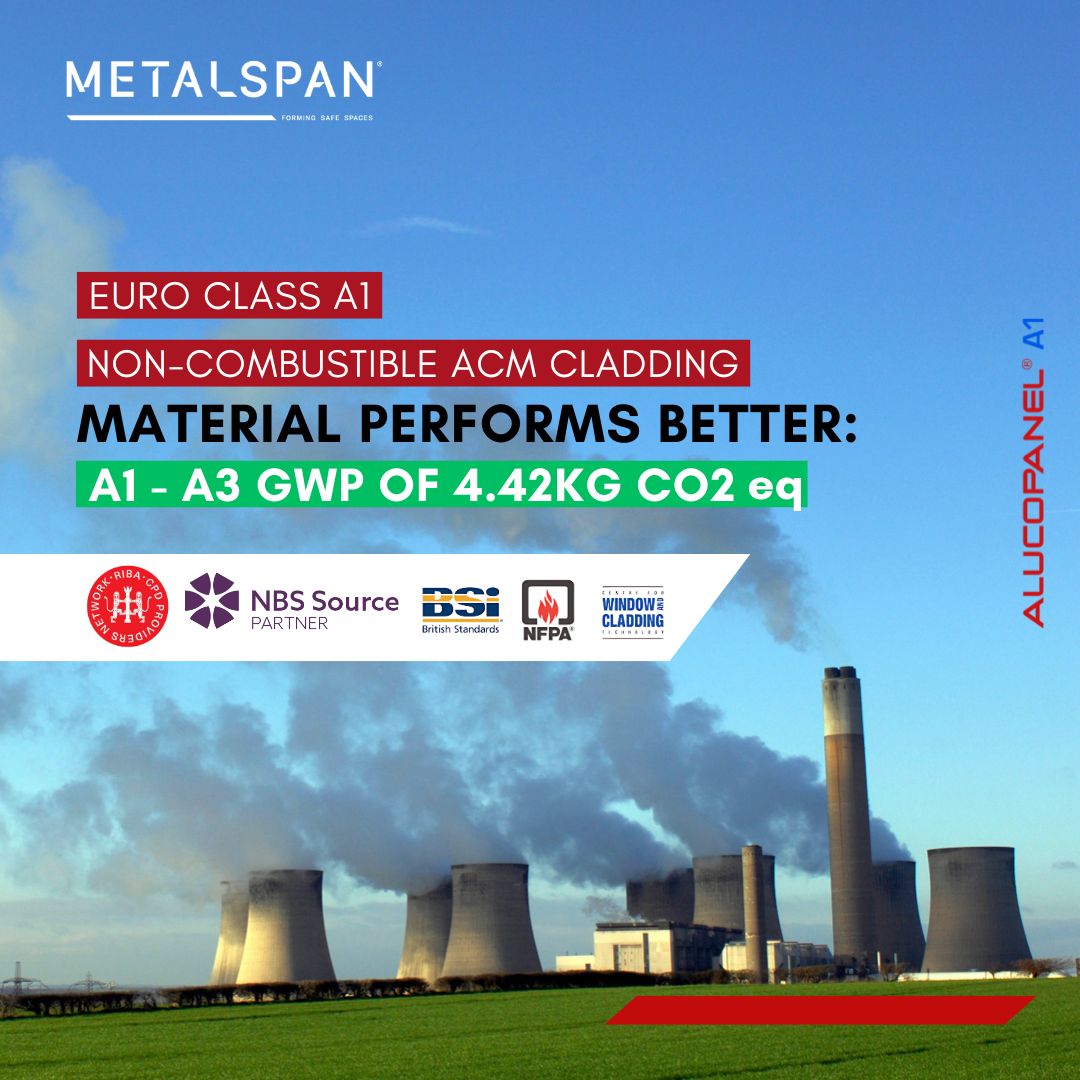 METALSPAN by ALUCOPANEL is a Euro Class A1 Non-Combustible Aluminium Composite Material with 100% inorganic core, making it one of the best engineering solutions for building facades due to its environmental benefits in addition to the maximum fire safety standard of A1.